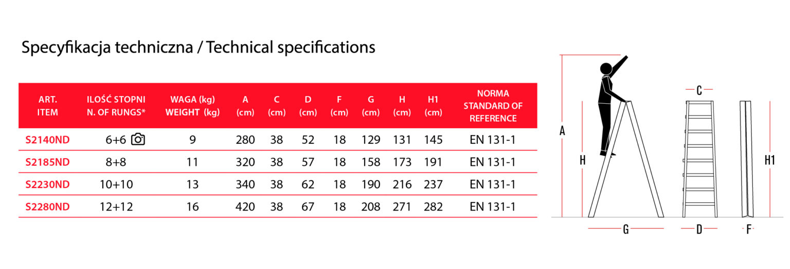 Drabina dwustronna z głębokimi stopniami ND Faraone