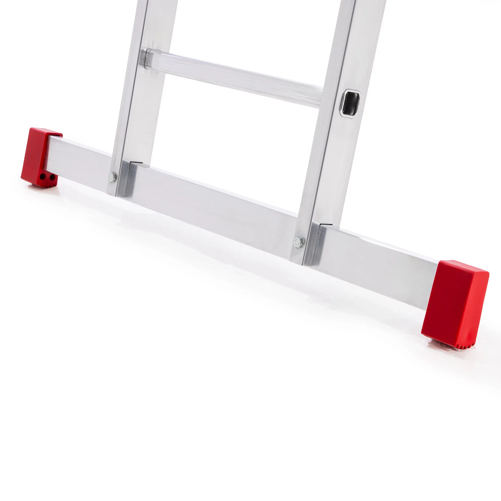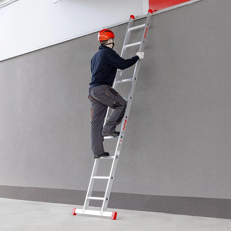 • Podłużnice drabiny wykonane zostały z wytrzymałych, zamkniętych  profili aluminiowych o przekroju 60 x 25 mm oraz 80 x 25 mm, dodatkowo boki wzmocnione 1,2 mm. Jakość  użytego do tego materiału gwarantuje dużą sztywność i trwałość drabiny.