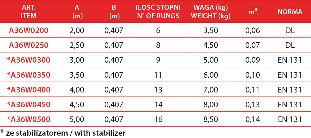 Izolacja elektryczna 1000 V AC i 1500 V DC. Prosta drabina przystawna skonstruowana z podłużnic z włókna szklanego i aluminiowych szczebli. Szczebel nitowany obwodowo.