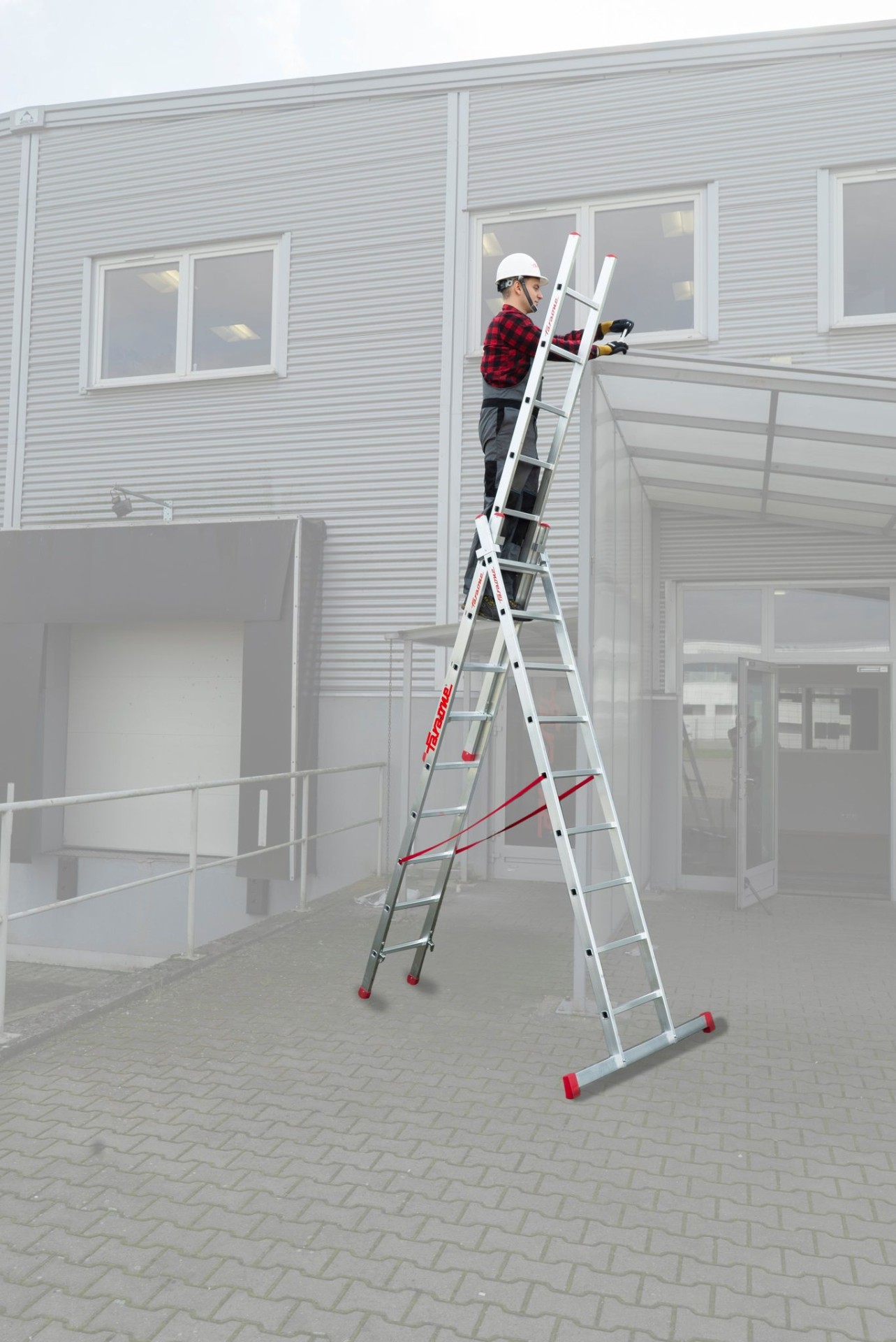 Podłużnice drabiny wykonane zostały z wytrzymałych, zamkniętych profili aluminiowych o przekroju 60 x25 mm, dodatkowo boki wzmocnione 1,2 i 2,4 mm. Jakość użytego do tego materiału gwarantuje dużą sztywność i trwałość drabiny.