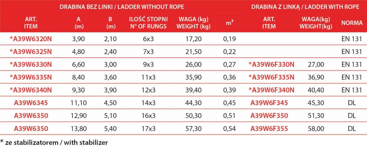 Drabina z włókna szklanego, 3 elementowa, wysuwana