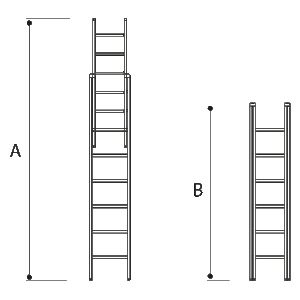 Drabina wysuwana skonstruowana z podłużnic z włókna szklanego i aluminiowych szczebli, z antypoślizgowymi przegubowymi stopami 120 x160 mm.