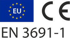 Wyprodukowane są zgodnie z wymaganiami bezpieczeństwa i zdrowia określonymi w dyrektywie 2006/42/WE i zgodnie z normą UNI EN 3691-1:2020. Klasyfikowane są jako wózki jezdniowe podnośnikowe z operatorem unoszonym wraz z ładunkiem, których udźwig nie przekracza 250 kg.