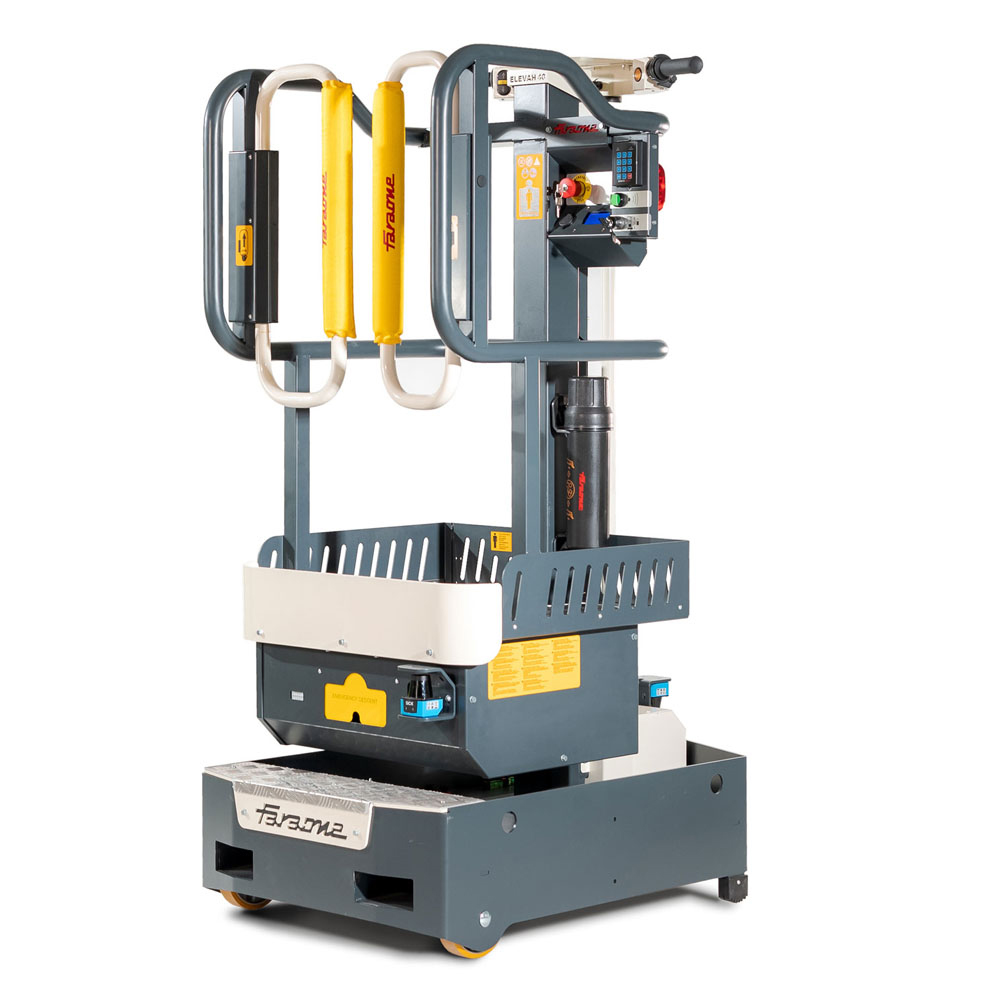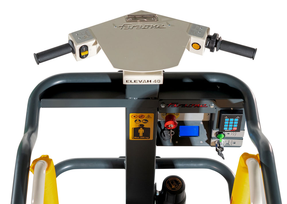 Elevah 40 Move oferuje liczne korzyści, zarówno pod względem optymalizacji, jak i bezpieczeństwa pracy. Blokada bramki uniemożliwia przypadkowe otwarcie kosza. To prawdziwa gwarancja bezpieczeństwa operatora, który może spokojnie pracować. Oprócz tego, w celu uniemożliwienia przypadkowych aktywacji platformy, kierownica została wyposażona w specjalne zabezpieczenie. Elektroniczny, automatyczny hamulec postojowy ułatwia pracę. Platforma jest ponadto wyposażona we wbudowane systemy kontrolne oraz w lampy sygnalizujące ruch.