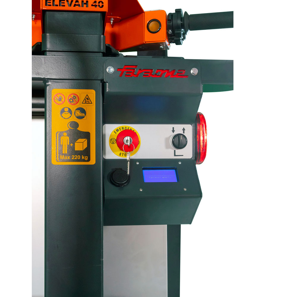 Elevah 40 Tires oferuje liczne korzyści w zakresie optymalizacji pracy, ale także w zakresie bezpieczeństwa pracy. W rzeczywistości, dzięki blokadzie drzwi, kosz nie może zostać przypadkowo otwarty. Jest to prawdziwa gwarancja bezpieczeństwa dla operatora, który może pracować w całkowitym spokoju. Ponadto, aby zapobiec przypadkowej aktywacji, dyszel jest wyposażony w urządzenie zabezpieczające. Aby ułatwić pracę, jest on wyposażony w elektroniczny i automatyczny hamulec postojowy. Ponadto jest wyposażony w zintegrowane systemy sterowania.
