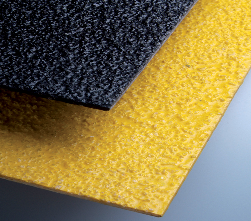 Powierzchnia antypoślizgowa tych płyt jest wykonana z tlenku glinu (korundu), który ma twardość porównywalną do diamentu przemysłowego. Dzięki specjalnie dobranym ziarnom, płyty oferują wyjątkową przyczepność, niezależnie od warunków pogodowych czy powierzchni. Zastosowana technologia GRP (żywica poliestrowa wzmacniana włóknem szklanym) zapewnia dużą wytrzymałość i trwałość materiału.